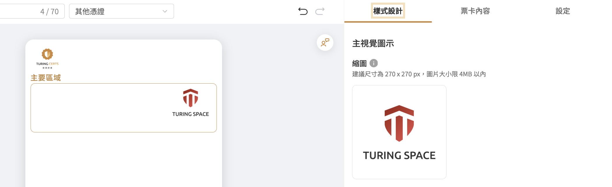* 顯示於票卡畫面左上角，系統將預設使用您發證機構的帳號圖示商標。